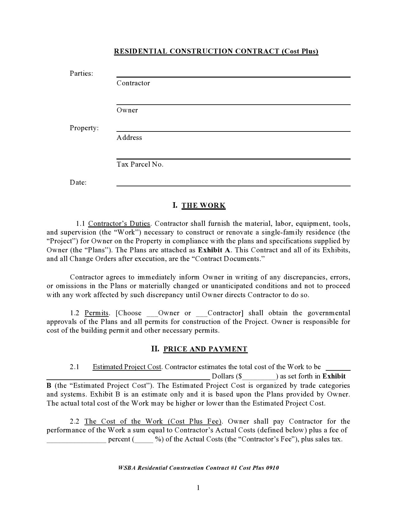 Cost Plus Percentage Contract Template
