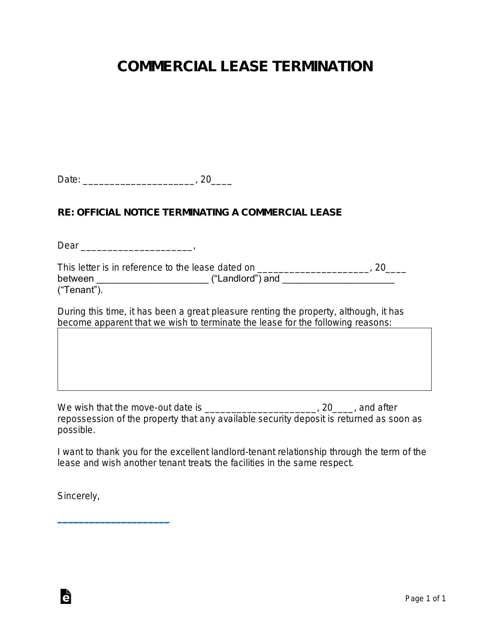 * Carefully review your original commercial lease agreement for all clauses related to termination, including notice periods, delivery methods, and property condition requirements.