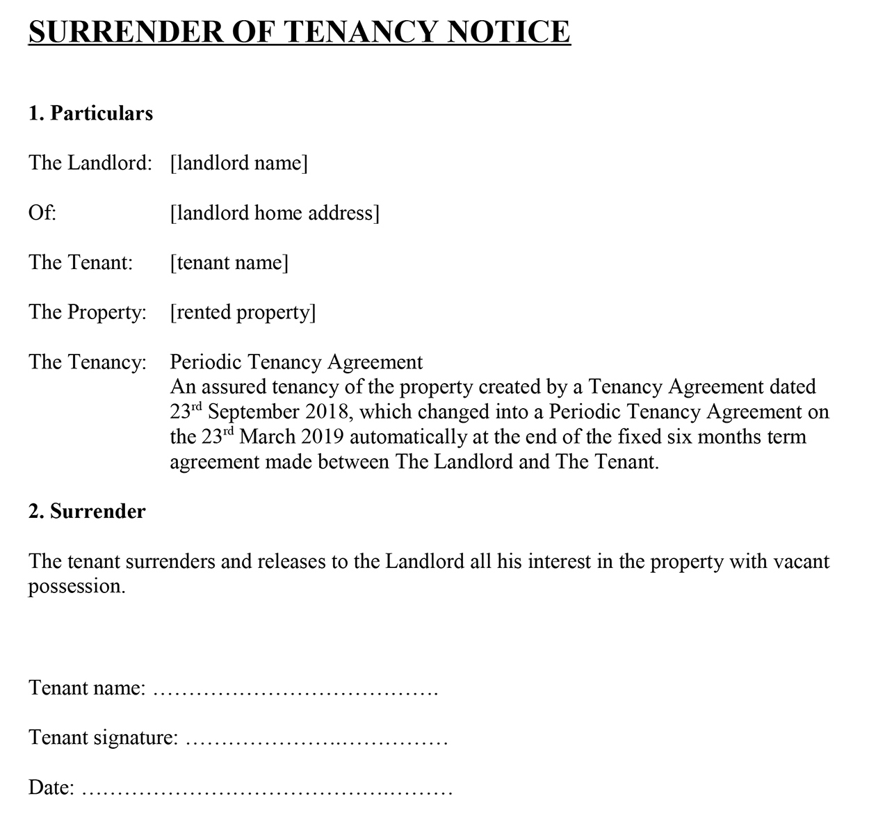 - Proposed Surrender Date: Specify the exact date on which the tenancy is agreed to end and possession will be handed back. This is crucial for calculating any outstanding rent or charges.